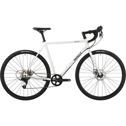 Preamble can run racks and fenders and carry a couple water bottles. Surly was raised on stealing basic cable, after all. Smooth and efficient on asphalt, Preamble’s double-butted main triangle provides a resplendent ride feel and withstands abuse from life’s inevitable potholes. Make it your own with flat bars, drop bars, a basket, or bags. On the road to steel euphoria, Preamble is the gateway drug.
